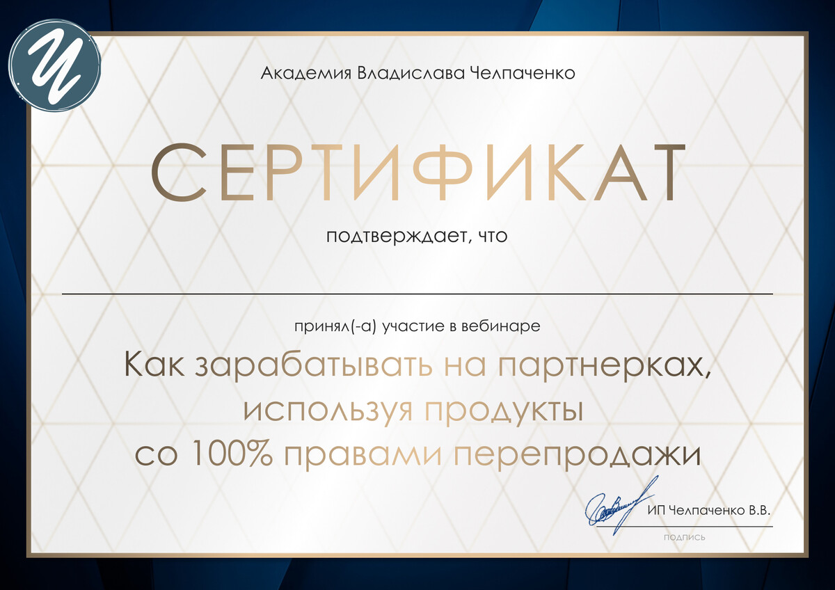 какие 3 практических шага Вы можете выполнить, чтобы начать получать 100% с продажи каждого экземпляра лучшего тренинга Владислава Челпаченко.